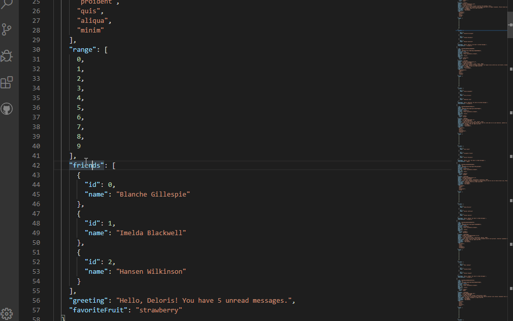 See how smart select expands out making it trivial to select the friends section of the sample JSON. Try selecting the same text with the mouse to see how much time smart select will save you.