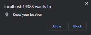 The Geolocation.getCurrentPosition() method can be used to get the current location. It accepts one mandatory parameter which is a callback function along with several optional parameters. When invoked this method will bring up a browser notification so that the user can allow or block the request for location information.
