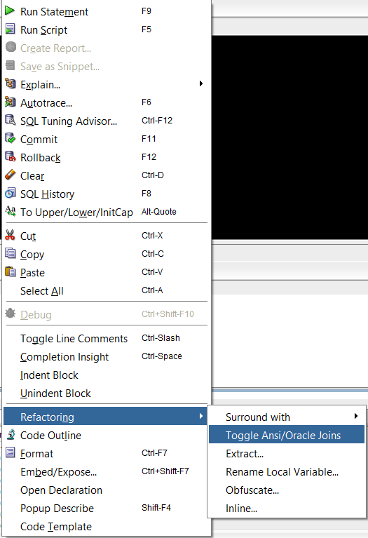Great post! I tried refactoring a query with Oracle JOINS to ANSI JOINS. Seems the tool got the translation completely wrong. I noticed when the query took forever to run. Somehow it mixed up INNER/LEFT/RIGHT.