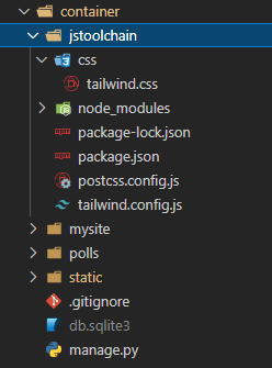 At this point tailwindcss has been set up and the jstoolchain folder should look like this: