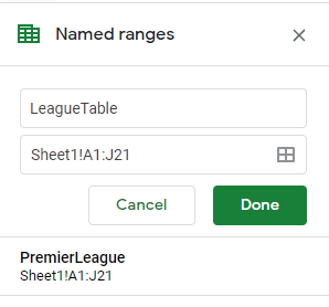 Enter a name, I have used LeagueTable then select Done.
