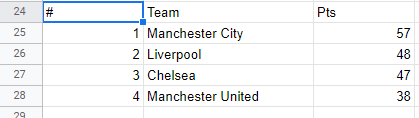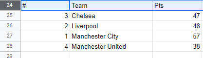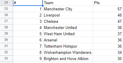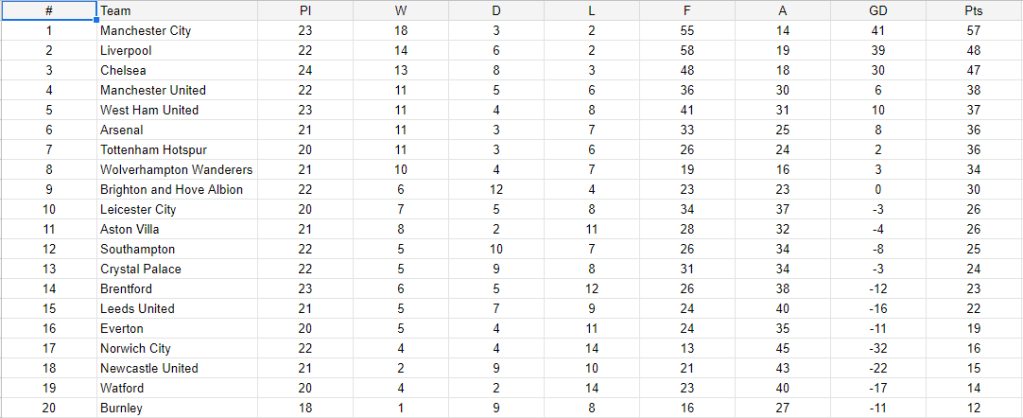 In this post I have used the English Premier League table as it was in January 2022, you can find this on GitHub.