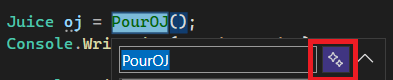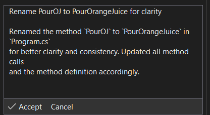 Pressing this button brings up several suggestions from Copilot for a new name for this method.